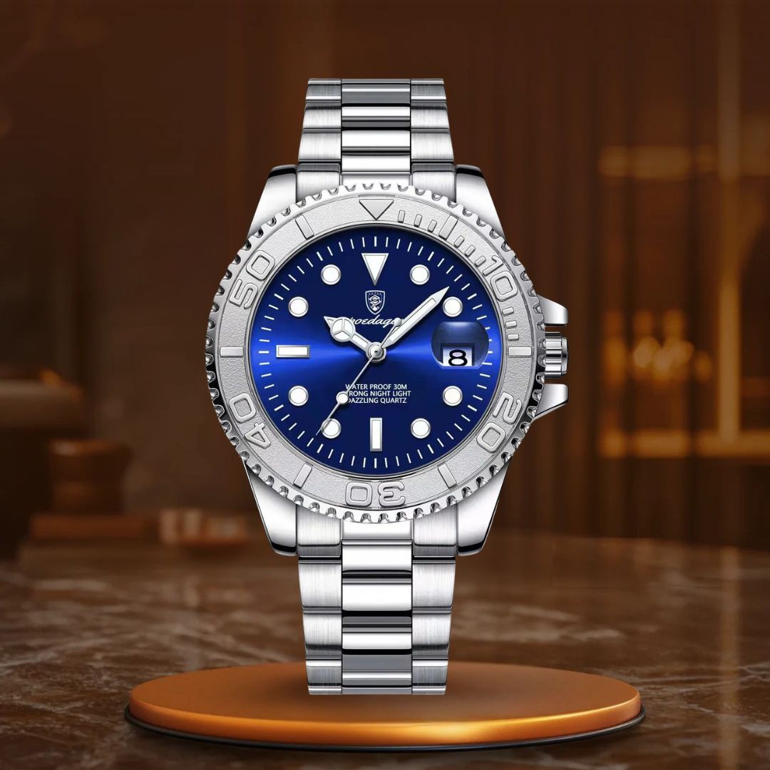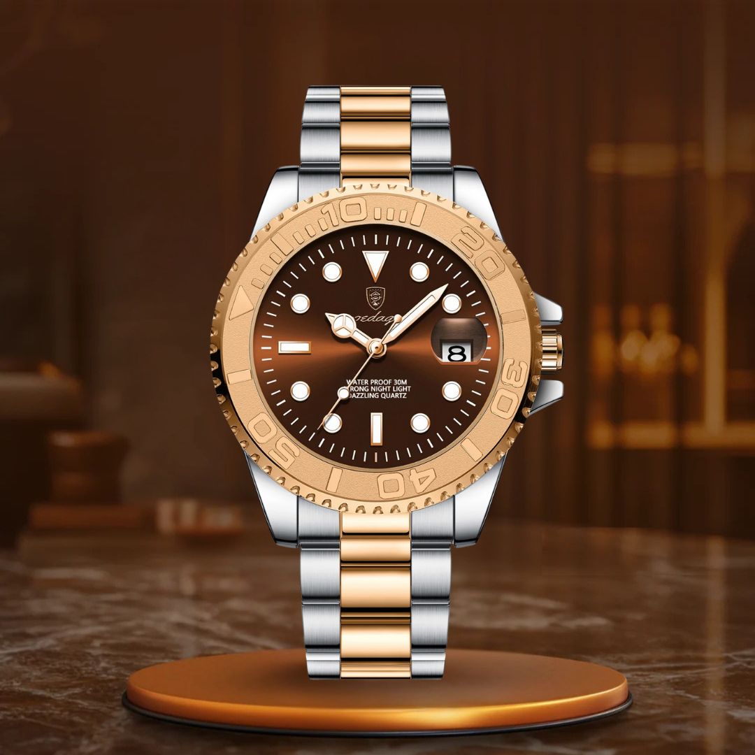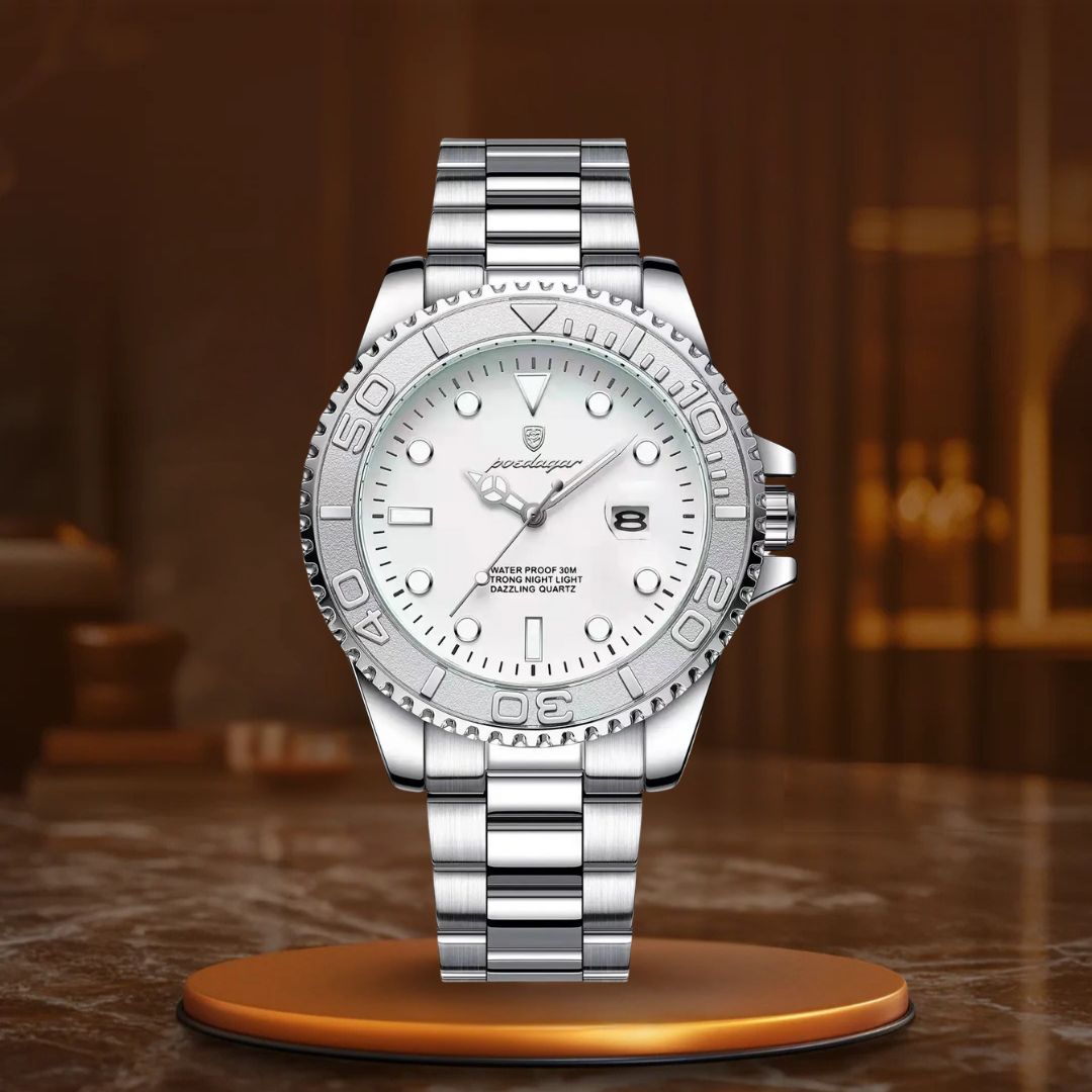O relógio masculino de luxo para negócios é a escolha perfeita para o homem moderno que procura estilo e praticidade. Com a sua elegante caixa em aço inoxidável, este relógio transmite profissionalismo, tornando-se um acessório essencial para reuniões de trabalho ou ocasiões formais. Os ponteiros e marcadores luminescentes facilitam a leitura das horas mesmo em ambientes com pouca luz, enquanto o movimento de quartzo preciso garante pontualidade absoluta.