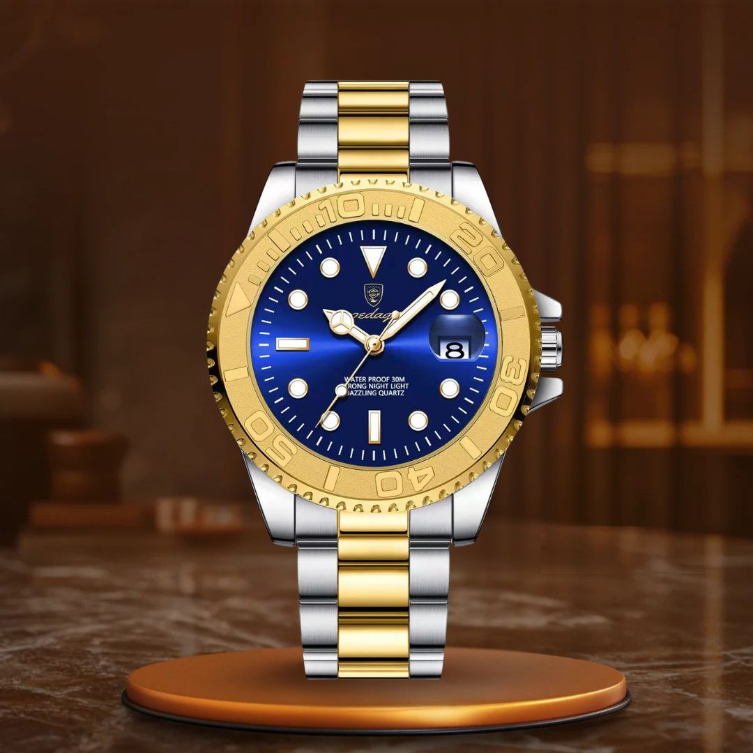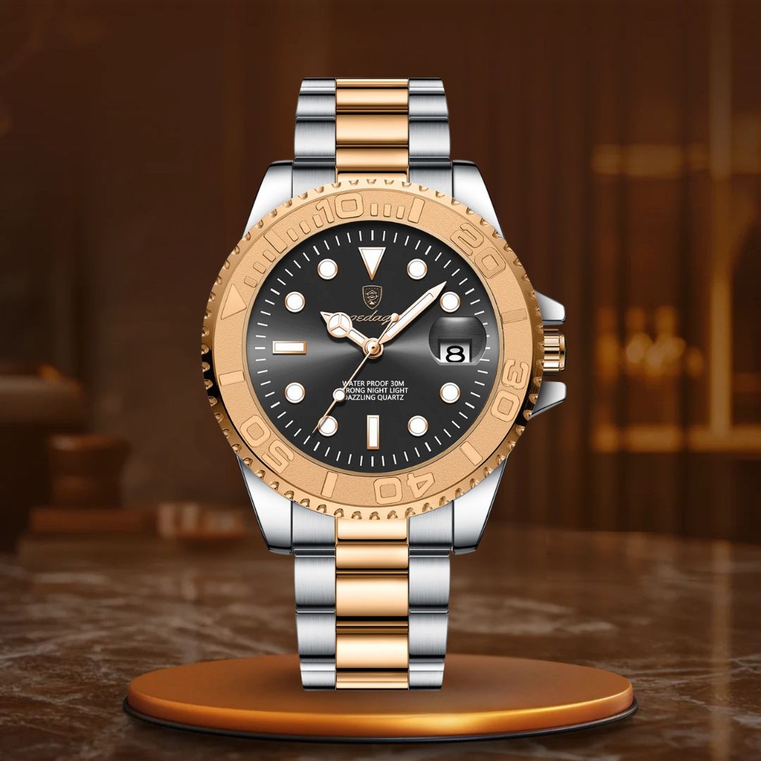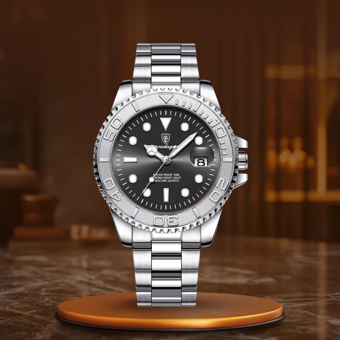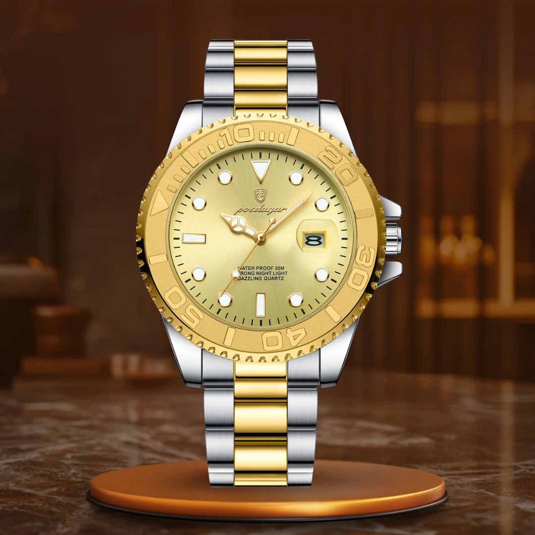O relógio masculino de luxo para negócios é a escolha perfeita para o homem moderno que procura estilo e praticidade. Com a sua elegante caixa em aço inoxidável, este relógio transmite profissionalismo, tornando-se um acessório essencial para reuniões de trabalho ou ocasiões formais. Os ponteiros e marcadores luminescentes facilitam a leitura das horas mesmo em ambientes com pouca luz, enquanto o movimento de quartzo preciso garante pontualidade absoluta.